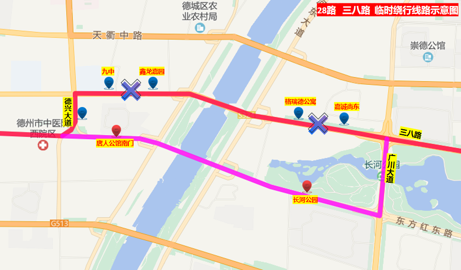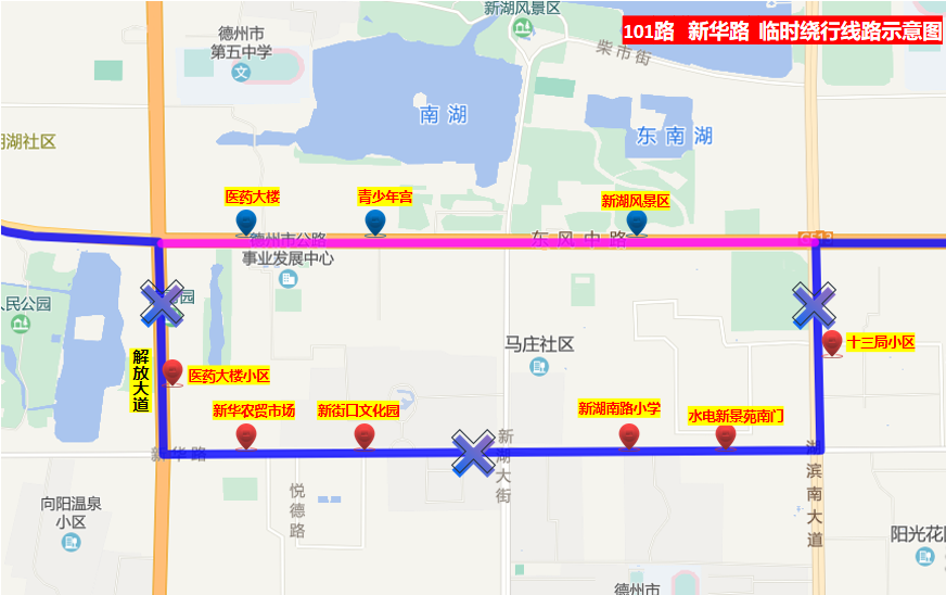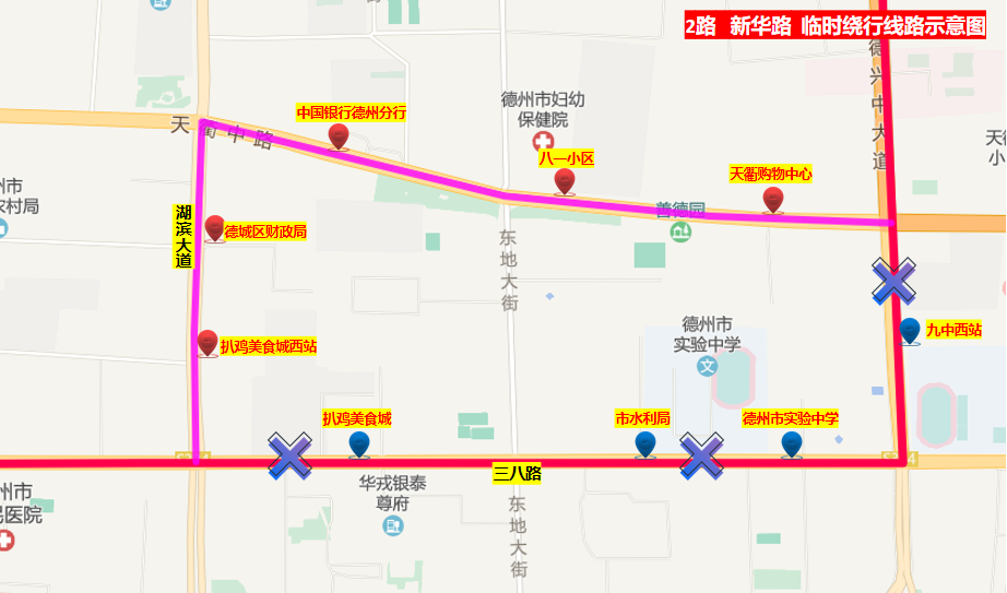 臨時(shí)取消:扒雞美食城、市水利局、德州市實(shí)驗(yàn)中學(xué)、九中西站4站;
