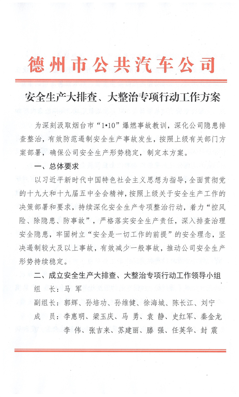 會議傳達(dá)了德州市安全生產(chǎn)委員會關(guān)于《全市安全生產(chǎn)大排查、大整治專項行動方案》、德州市交通運(yùn)輸局關(guān)于《2021年全市春運(yùn)工作組織保障方案》、市交投集團(tuán)關(guān)于《交投集團(tuán)安全生產(chǎn)大排查、大整治專項行動工作方案》文件精神。并根據(jù)工作要求制定、印發(fā)了公司《安全生產(chǎn)大排查、大整治專項行動工作方案》和《2021年春運(yùn)工作方案》。