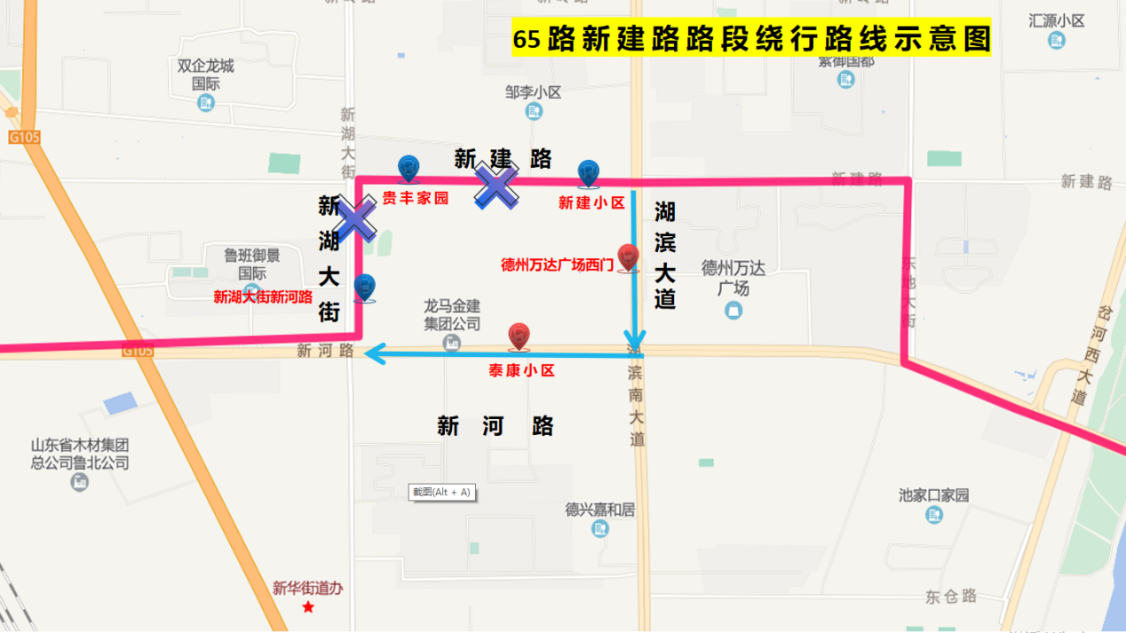 因新建路施工尚未結(jié)束,不具備通行條件,此路段繼續(xù)繞行;富源大街恢復原線路運營,具體情況如下: