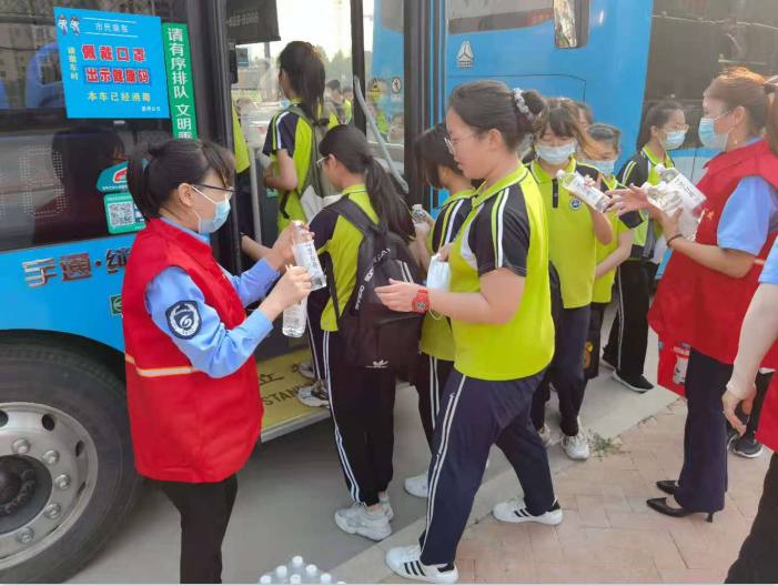 陵城公交成立助學(xué)中考志愿服務(wù)隊(duì),公司職工積極報(bào)名、主動(dòng)請(qǐng)纓,志愿者們協(xié)同車長做好疫情防控和安全乘車督導(dǎo)員,為考生發(fā)放了“愛心助考”礦泉水和風(fēng)油精,礦泉水上張貼了鼓勵(lì)和祝福,預(yù)??忌翱荚図樢?,旗開得勝”字里行間都充滿了真真切切的關(guān)心與鼓舞。