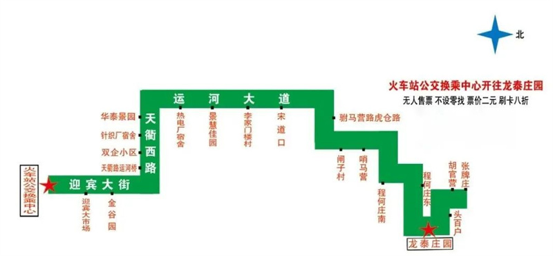 運(yùn)營(yíng)路線:火車站公交換乘中心、迎賓大街、天衢路、運(yùn)河大道、駙馬營(yíng)路、虎倉(cāng)路、龍?zhí)┣f園,返程亦同;同時(shí)恢復(fù)天衢路運(yùn)河橋、雙企小區(qū)、針織廠宿舍、華泰景園、熱電廠宿舍、景慧佳園、李家門樓村、宋道口、駙馬營(yíng)路虎倉(cāng)路等9處站點(diǎn)的??俊?/span>