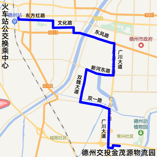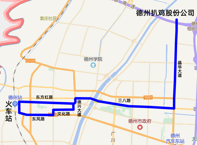 運(yùn)營路線:德州扒雞股份公司、晶華大道、三八路、德興大道、東方紅路、迎賓大街、火車站;