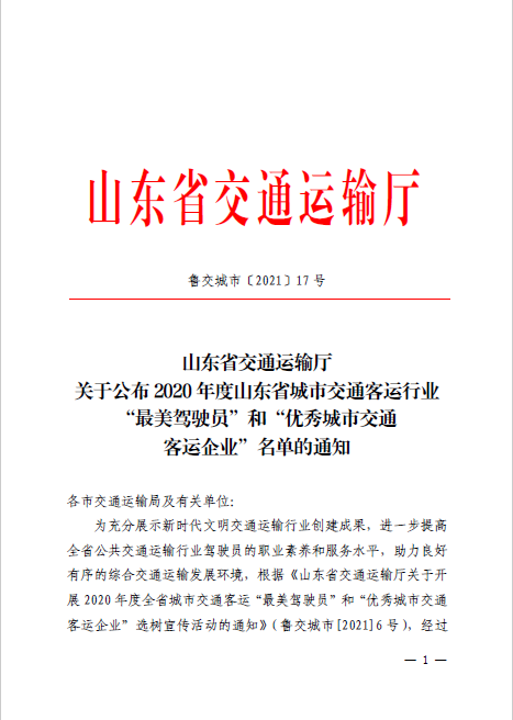 喜報(bào)!德州公交榮獲全省城市交通客運(yùn)“優(yōu)秀城市交通客運(yùn)企業(yè)”稱(chēng)號(hào),12路公交駕駛員榮獲全省“最美駕駛員”稱(chēng)號(hào)