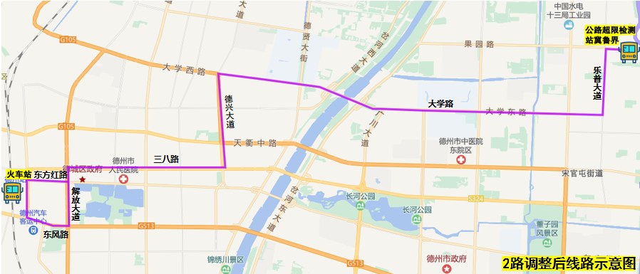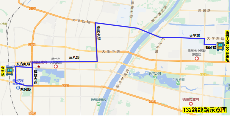 公路超限檢測(cè)站冀魯界,東海福滿園,付莊小區(qū),大學(xué)東路樂(lè)普大道,上海大眾瑞馳4S店,艾家坊小區(qū),亞太集團(tuán),山東華宇工學(xué)院、德州職業(yè)技術(shù)學(xué)院,華晨駕校,雙元駕校,大學(xué)路中燃加氣站,德州學(xué)院,蕭何莊,德州海關(guān)德興中大道辦公區(qū),市應(yīng)急管理局,德州口腔醫(yī)院,市中級(jí)人民法院,九中西站,德州市實(shí)驗(yàn)中學(xué),市水利局,扒雞美食城,三八便民市場(chǎng),市人民醫(yī)院北門,德州市第一中學(xué),解放北路小學(xué),東方紅名店街5號(hào)入口,貴都大酒店,五中光明小學(xué),人民公園,汽車總站,九州商城,火車站;