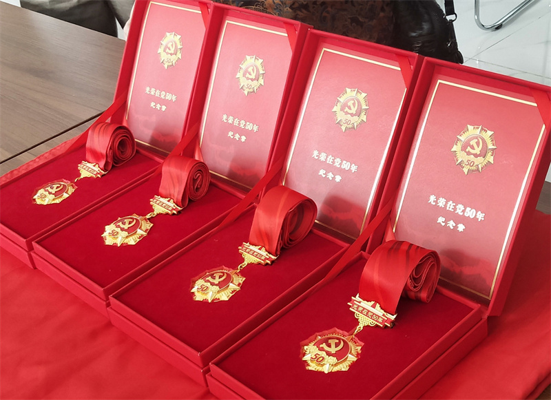 并為老黨員太樹(shù)桐同志、徐硯坤同志、李秀芹同志、張玉田同志等4位黨齡50年以上的老黨員頒發(fā)紀(jì)念章。