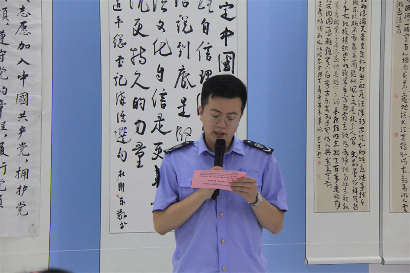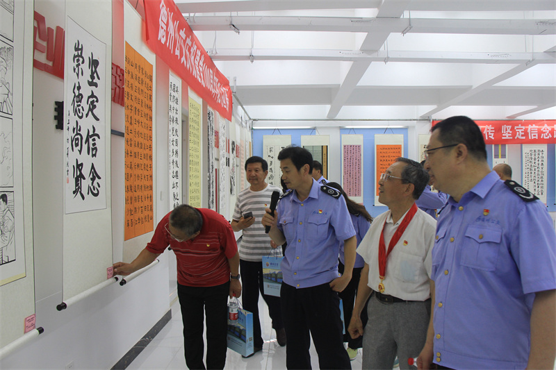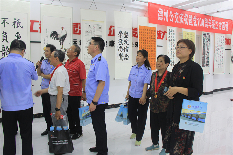 參觀慶祝建黨100周年職工書(shū)畫展。