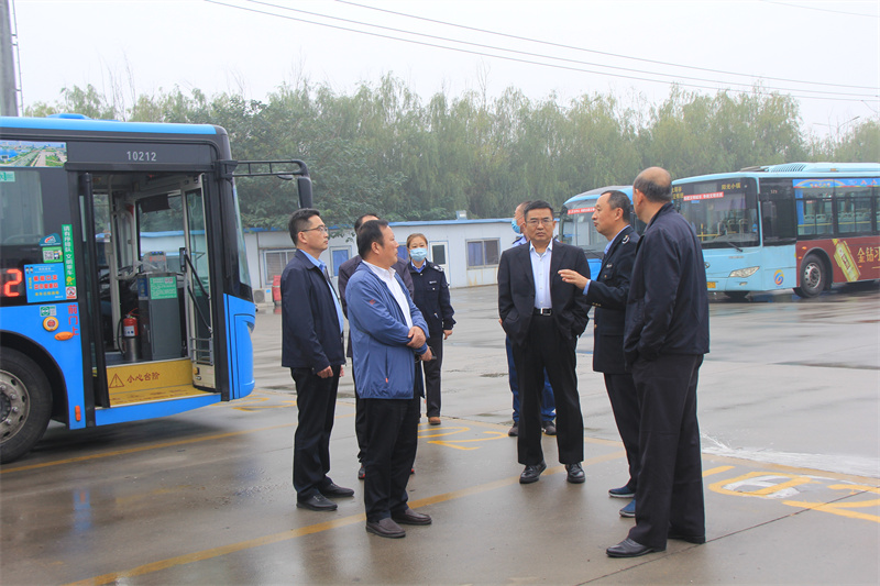 10月9日上午,省交通運(yùn)輸廳廳城市交通處副處長(zhǎng)李光城、科長(zhǎng)吳磊到我市調(diào)研公共交通防汛工作。市交通運(yùn)輸局局長(zhǎng)齊永軍,副局長(zhǎng)張金華,市城市交通科科長(zhǎng)孟凡朝,公司黨委書(shū)記、總經(jīng)理郭輝,黨委委員、副總經(jīng)理孫培功參加。