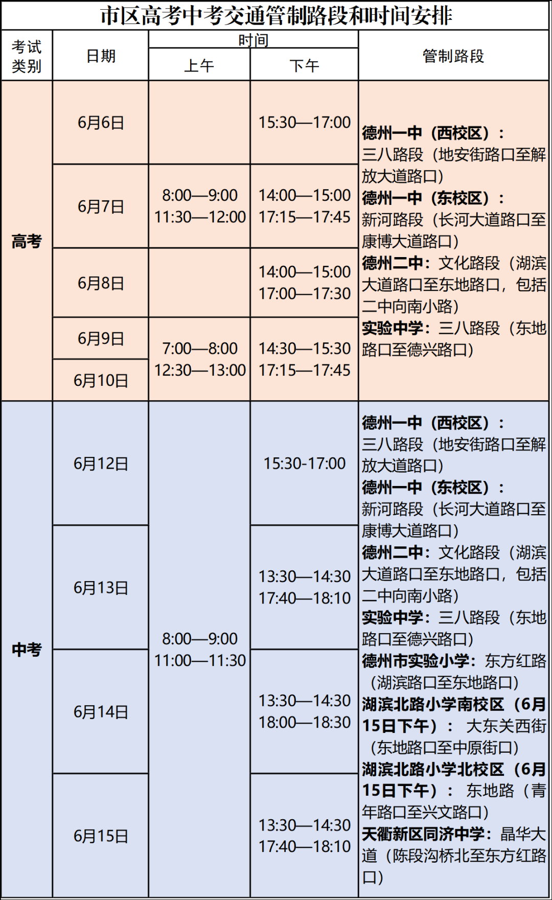 2023年普通高等學(xué)校招生全國統(tǒng)一考試與普通高中學(xué)業(yè)水平等級考試(以下簡稱高考)于6月7日至10日進(jìn)行,考點(diǎn)設(shè)在德州一中(西校區(qū))、德州一中(東校區(qū))、德州二中、實(shí)驗(yàn)中學(xué)、陵城區(qū)第一中學(xué);初中學(xué)業(yè)水平考試(以下簡稱中考)于6月13日至15日進(jìn)行,考點(diǎn)設(shè)在德州一中(西校區(qū))、德州一中(東校區(qū))、德州二中、實(shí)驗(yàn)中學(xué)、德州市實(shí)驗(yàn)小學(xué)、湖濱北路小學(xué)南校區(qū)(6月15日下午)、湖濱北路小學(xué)北校區(qū)(6月15日下午)、天衢新區(qū)同濟(jì)中學(xué)。