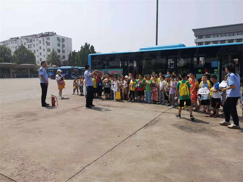 參觀完信息調(diào)度中心,小記者們登上了一輛電動公交車。安全技術(shù)員向小記者詳細(xì)講解了乘車注意事項、車內(nèi)安全設(shè)施、設(shè)備使用和公交乘車盲區(qū)等安全常識。等公交車停穩(wěn)后排隊依次上車,乘車時頭、手、身體不能伸向窗外,行駛中不要吃用竹簽或其他金屬物串聯(lián)的食物,不要向車外拋灑物品,下車后安全過馬路等注意事項。讓孩子們從小養(yǎng)成綠色出行、平安出行的好習(xí)慣。