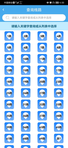 一、公交線路查詢界面進(jìn)行優(yōu)化,把原有的“xx路”文字按鈕替換為更加醒目和直觀的圖標(biāo)按鈕。