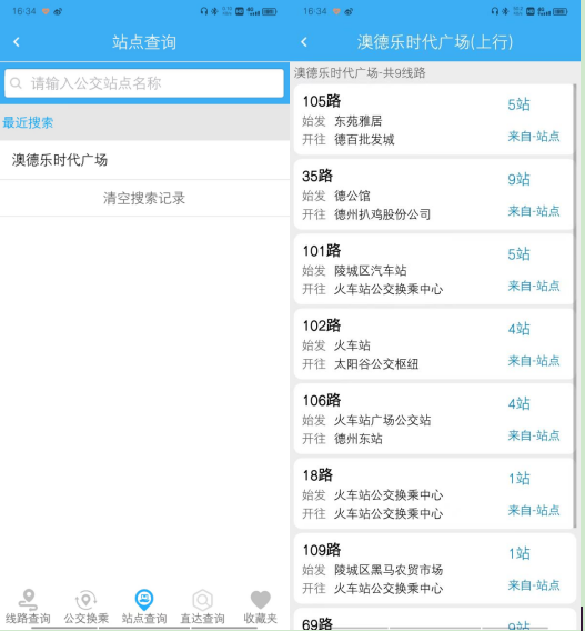 三、“站點(diǎn)查詢”功能中,點(diǎn)擊所查詢的站點(diǎn)名稱,除顯示經(jīng)過該站點(diǎn)的所有線路外,增加了顯示車輛距離本站還有幾站的功能。