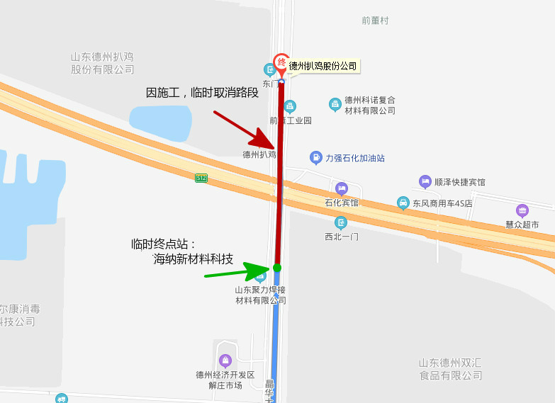 臨時(shí)將棗林齊站調(diào)整為終點(diǎn)站,臨時(shí)取消前小莊、張官屯、德州瑞康食品有限公司、后董、德州扒雞股份公司站點(diǎn)。