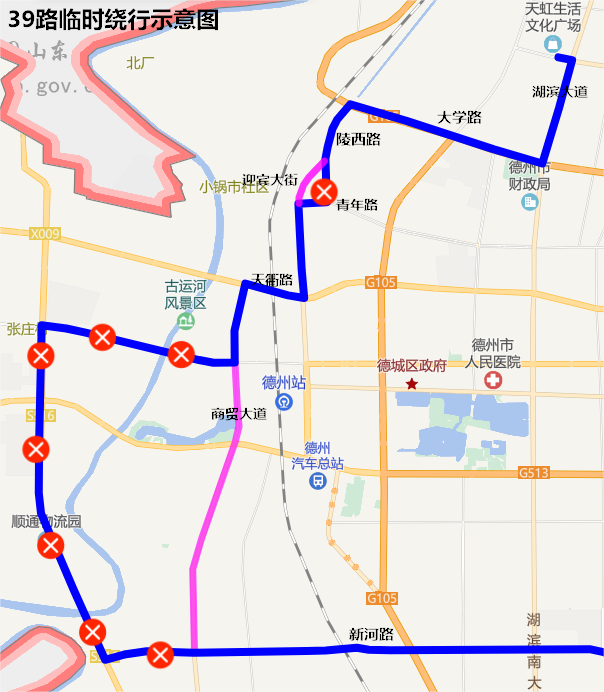 臨時取消:陵西路青年路、賓海勝利花苑、帝景城家園、嘉恒小區(qū)、德州市第二實驗小學、三里莊社區(qū)、魏莊社區(qū)、德州面粉廠宿舍等8站;