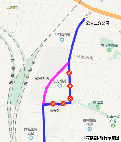 因青年路(迎賓大街至陵西路路段)道路施工,即日起,17路臨時繞行,39路在原繞行基礎(chǔ)上臨時繞行,具體如下: