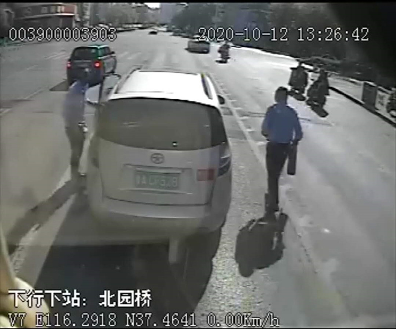 2020年10月12號下午13時許,39路駕駛員李建駕駛公交車到達(dá)解放路與青年路交叉口處等待紅綠燈時,突然發(fā)現(xiàn)前面車輛車頭冒出陣陣白煙。