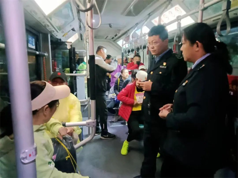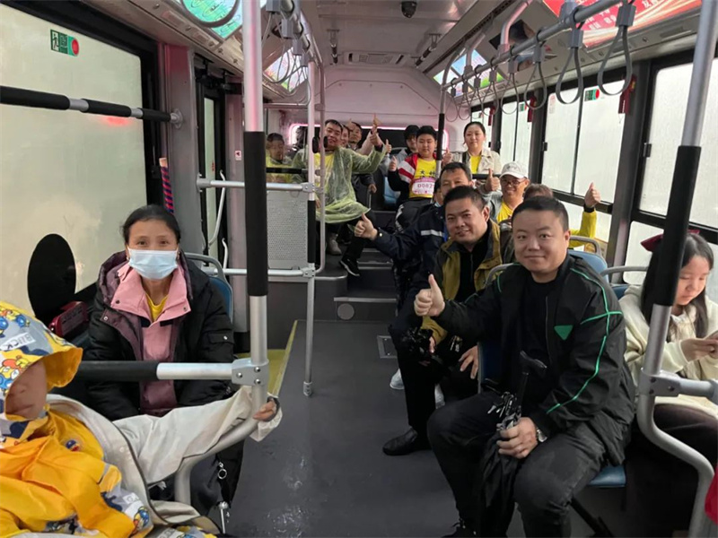 活動(dòng)當(dāng)天凌晨五時(shí)左右,交投公交集團(tuán)保障人員及車輛前往各接駁點(diǎn),將志愿者及工作人員及時(shí)運(yùn)送至賽道沿途各路口、補(bǔ)給站,并分批次輸送參賽運(yùn)動(dòng)員抵達(dá)賽事起點(diǎn),為視障跑者提供專人專車接送服務(wù),確保比賽順利有序。同時(shí)各站點(diǎn)保障人員提前到崗,及時(shí)關(guān)注道路封控、解封情況,協(xié)助乘客、車長(zhǎng)做好線路繞行、調(diào)整等運(yùn)營(yíng)服務(wù)保障工作,宣傳公交免費(fèi)政策、一站一碼和智能掌上公交APP。