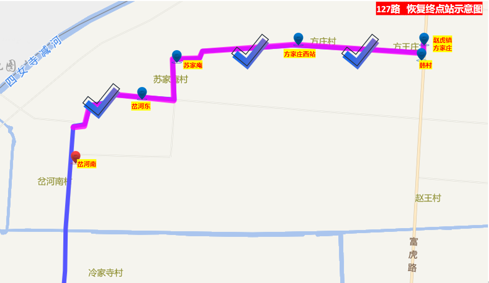 同時恢復:岔河東、蘇家庵、方家莊西站、韓村、趙虎鎮(zhèn)方家莊5站的???。