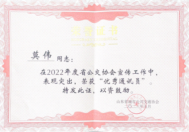 德州交投公交集團(tuán)榮獲山東省城市交通協(xié)會(huì)宣傳工作多項(xiàng)榮譽(yù)