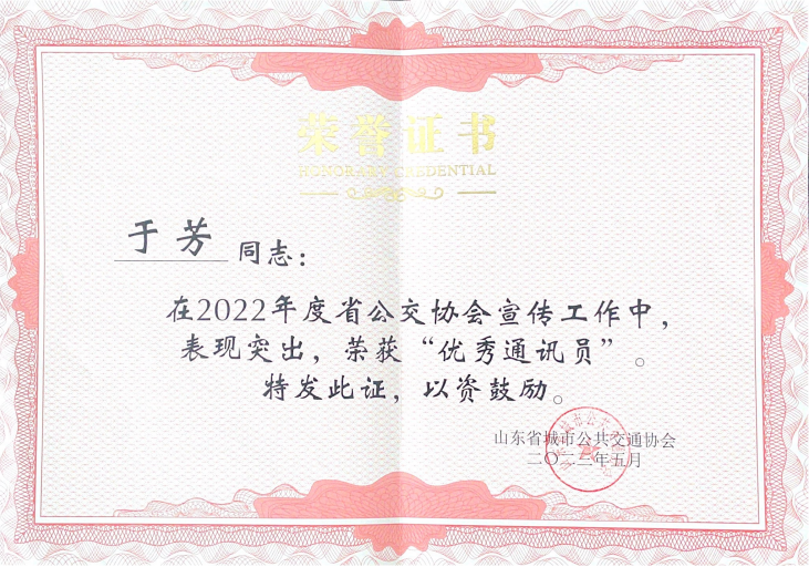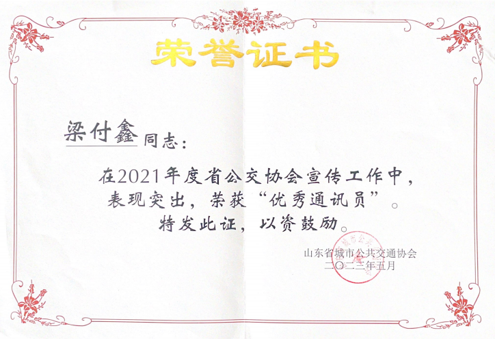 會(huì)上表彰了2021年度、2022年度宣傳工作先進(jìn)單位、優(yōu)秀通訊員。德州交投公交集團(tuán)榮獲2022年度宣傳先進(jìn)單位,公司1人榮獲2021年宣傳工作先進(jìn)個(gè)人、2人榮獲2022年度宣傳工作先進(jìn)個(gè)人。