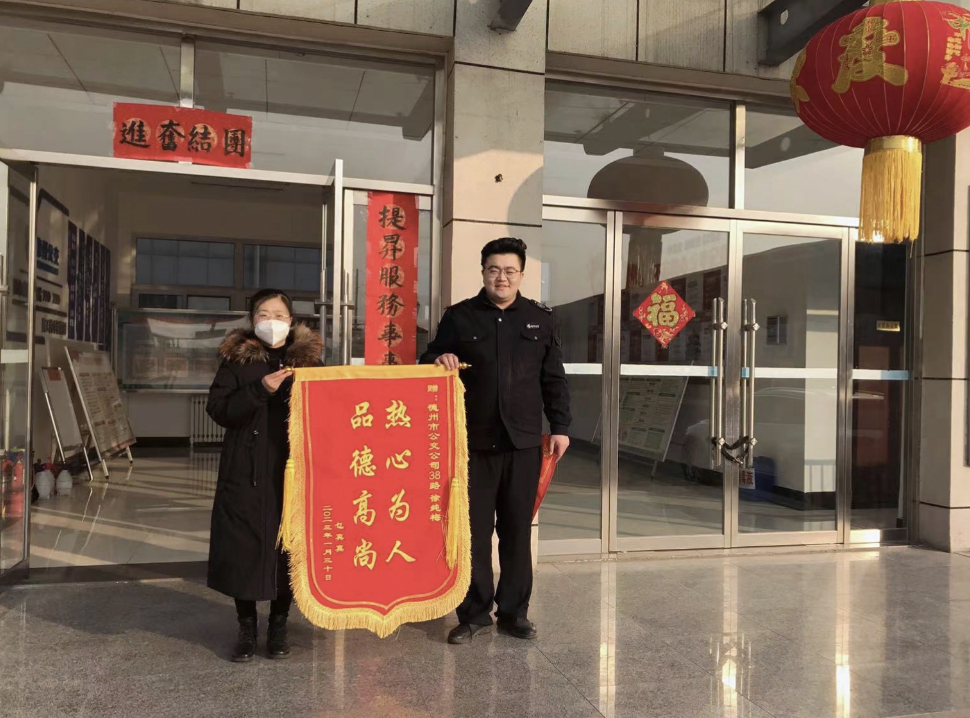 同日下午,乘客乜女士來到營運(yùn)二分公司,贊揚(yáng)和感謝38路班長徐純梅具有熱心助人的高尚品質(zhì),為徐純梅送上印有“熱心為人 品德高尚”的錦旗。同時也對公交培養(yǎng)了高素質(zhì)、高覺悟的員工進(jìn)行感謝。