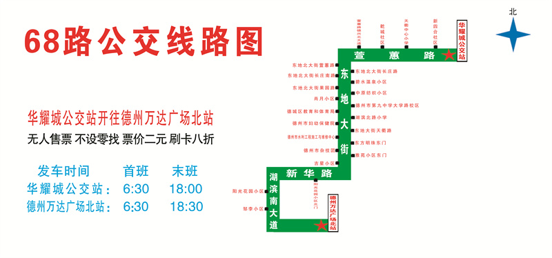 68路開通,由華耀城公交站開往德州萬達(dá)廣場北站: