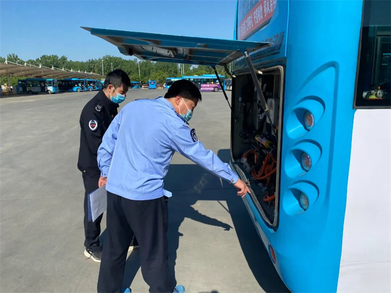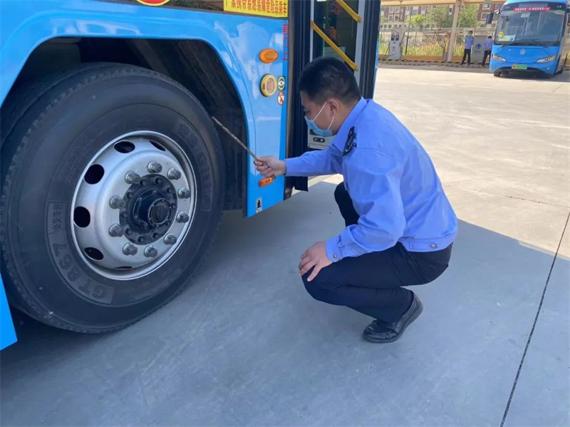▲駕駛員正在做上崗前的檢測(cè),把“人不安全不上車”落實(shí)到位