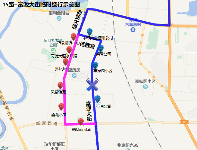 因富源大街(富源大街與新河路交叉口北側)道路施工,即日起,15路線臨時繞行,具體如下:
