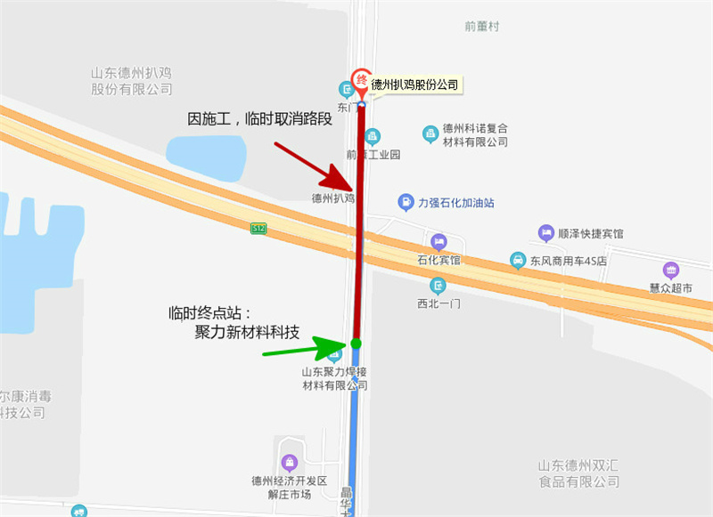 17路終點(diǎn)站調(diào)整至聚力新材料科技,臨時(shí)取消德州扒雞股份公司站。