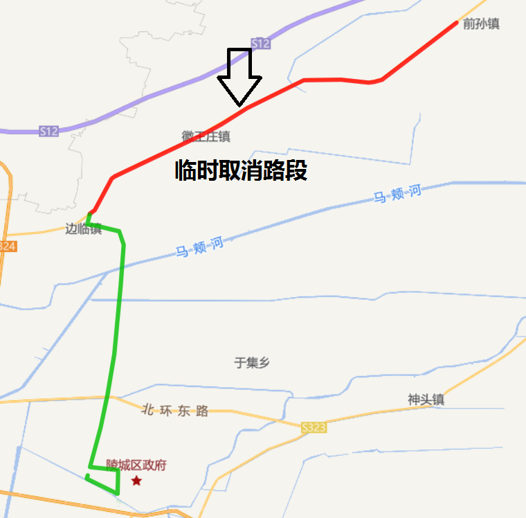 臨時(shí)取消雙向站點(diǎn):邊臨鎮(zhèn)北站、東華、西華、北宋莊、寨門樓、白莊、西角寨、南邢莊、徽王莊、徽王街、后程、孫世官、西紙坊、東紙坊、橋頭孫、楊頂莊、王解、王奇/史家、王鄭、后張、安善仁村、西龐、東龐、張架、前孫街、前孫。