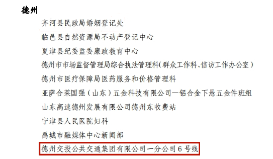 德州交投公交集團(tuán)一分公司6路喜獲山東省婦聯(lián)“巾幗文明崗”榮譽(yù)