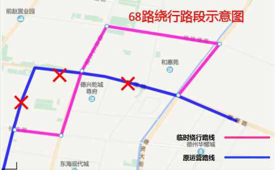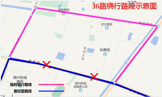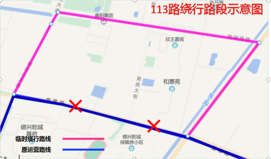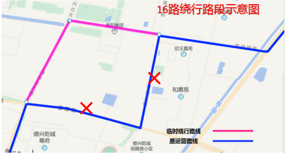 因萱蕙路雨污分流工程施工,道路封閉,不具備通行條件,即日起,公交16路、36路、68路、113路運營路線進行臨時調(diào)整,具體如下: