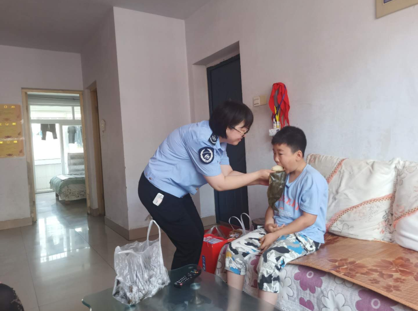 端午節(jié)當(dāng)天,七名“愛(ài)心媽媽”分別來(lái)到結(jié)對(duì)幫扶兒童的家中,為他們送去了愛(ài)心粽子、六個(gè)核桃等食品和圖書。“愛(ài)心媽媽”們?yōu)楹⒆觽儎凈兆映?,陪孩子們做游戲、聊天,并送上端午?jié)節(jié)日的問(wèn)候和祝福。