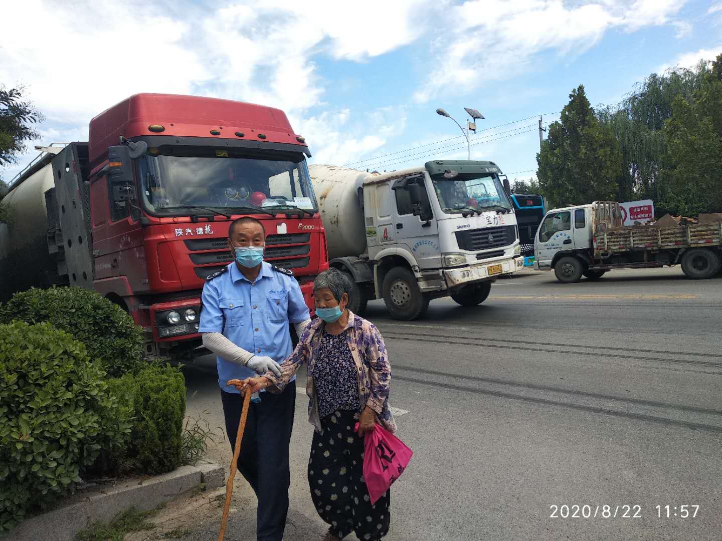 司機(jī)站點(diǎn)下車護(hù),牽手老人過(guò)馬路。