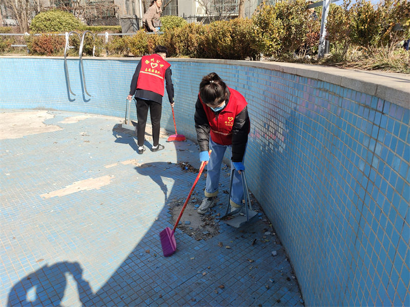 活動中,志愿者們發(fā)揚(yáng)不怕臟不怕累的精神,相互配合、干勁十足。大家自帶各種清潔工具對社區(qū)道路、綠化帶、水池進(jìn)行全面打掃和清理。同時,向社區(qū)居民發(fā)放德州公交征求意見書,聽取居民們出行方面的意見和建議。