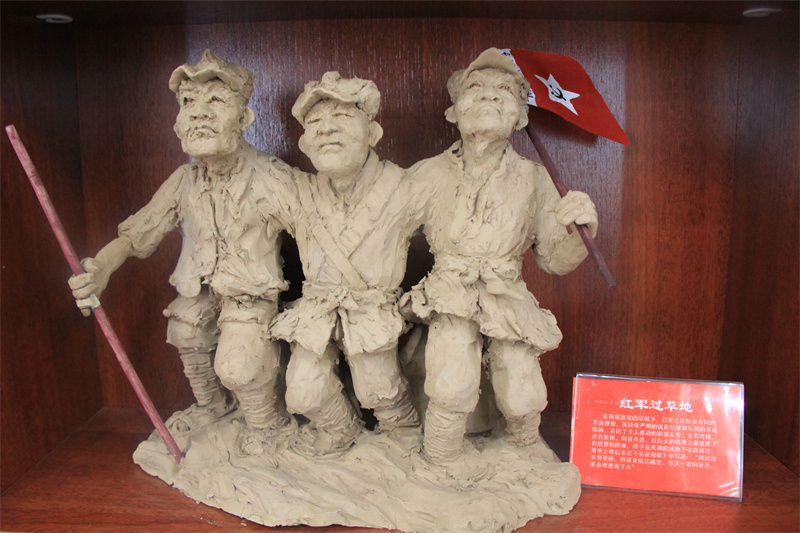 先輩精神薪火相傳、歷久彌新。紅船、毛澤東、李大釗、鄧恩銘、狼牙山五壯士、紅軍過草地......一個個栩栩如生的泥塑作品仿佛帶我們重溫了那段崢嶸歲月。