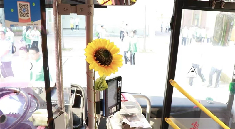 為營造良好出行環(huán)境,公交車不僅嚴(yán)格執(zhí)行衛(wèi)生標(biāo)準(zhǔn),通風(fēng)消毒,提前開啟車內(nèi)空調(diào),保持車廂溫度適宜,為考生提供舒適的乘車環(huán)境。還配備了便于考生識(shí)別車次的標(biāo)識(shí),并在車身張貼了為考生加油的橫幅。同時(shí)車廂內(nèi)裝飾粽子和向日葵,寓意“高中”和“一舉奪魁”。