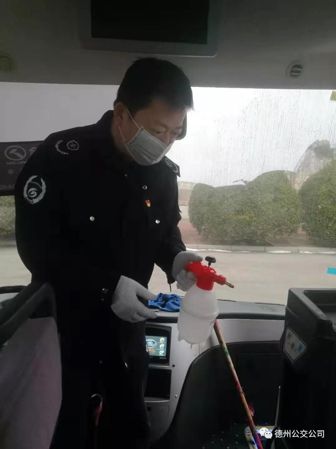 春節(jié)前夕,新型冠狀病毒疫情爆發(fā),為了給德州水廠干部職工提供一個(gè)安全滅毒的乘坐空間,秦孝利每天認(rèn)真執(zhí)行公司規(guī)定的“一日四消毒”措施,定時(shí)對(duì)座椅、扶手等設(shè)施仔細(xì)擦拭消毒。保證水廠干部職工每天安全、舒適的上下班,他堅(jiān)信只要我們消毒到位,我們一定會(huì)很快打贏這場(chǎng)戰(zhàn)役,無(wú)論什么時(shí)候,我們公交人都會(huì)全心全意為大家服務(wù)!"
