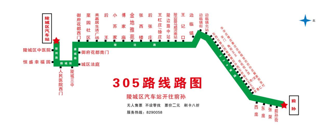 運(yùn)營線路:陵城區(qū)汽車站、陵州路、顏城街、唐城路、陵邊路、平安路、邊臨鎮(zhèn)街、324省道、前孫鎮(zhèn),返程亦同;