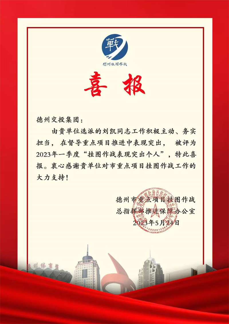 交投公交集團一員工榮獲“掛圖作戰(zhàn)表現(xiàn)突出個人”榮譽稱號