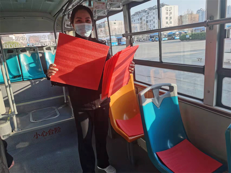 近日,市公交公司職工郭延紅為2路、6路、19路、30路自費購置了880個“暖心坐墊”,并將“暖心坐墊”一一鋪在公交車廂內。