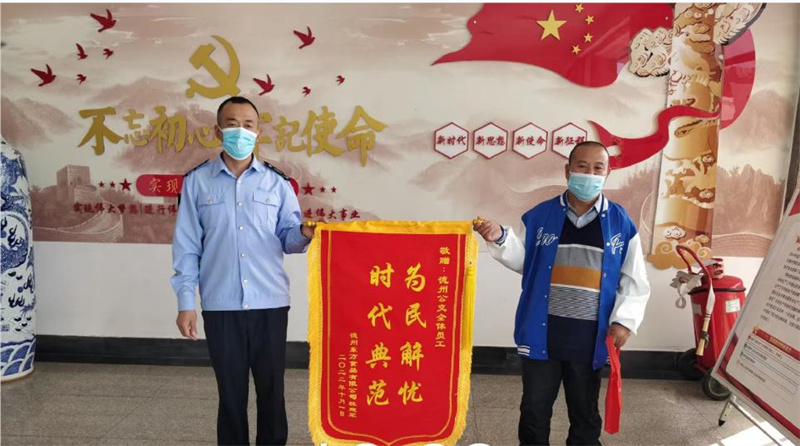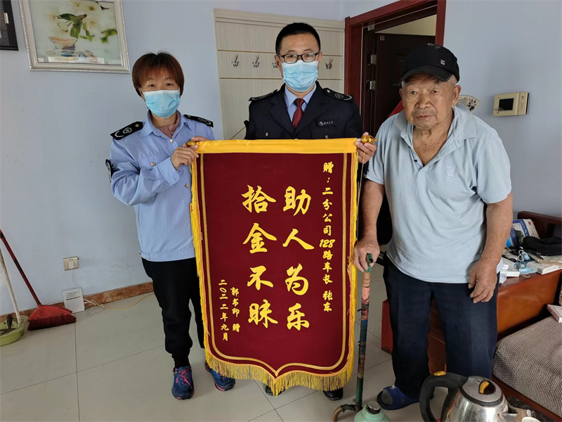 二分公司128路車長張東在運營途中撿到乘客遺忘在車上的現(xiàn)金,張東看到后第一時間替失主保管好并及時將乘客刷卡信息報告分公司,后經(jīng)分公司辦公室人員、信息中心董祥靜、一分公司吳紅菊接力最終成功聯(lián)系到失主郭先生,由于郭先生行動不便,在和郭先生提前溝通好后,于今天前往郭先生家中將現(xiàn)金如數(shù)交還。失主郭先生核實認(rèn)領(lǐng)后當(dāng)即要拿出現(xiàn)金和茶葉表示感謝,工作人員婉拒后又拿出特意制作的錦旗來贊揚車長張東拾金不昧的高尚品質(zhì)。