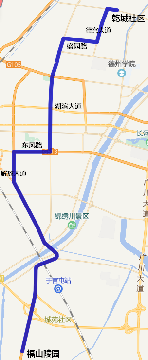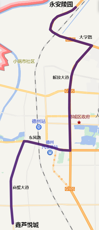 途經(jīng)主要站點(diǎn):鑫蘆悅城、鑫苑小區(qū)、鳳凰雅苑、熙鳳居、汽車總站、人民公園、德州監(jiān)獄宿舍、貴都花園、北園便民市場(chǎng)等。