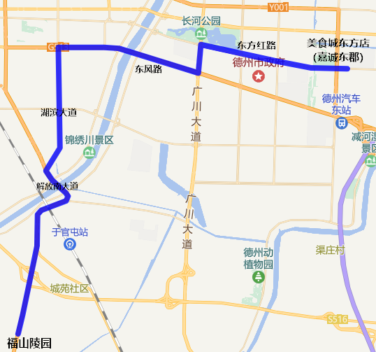 運(yùn)營(yíng)路線:美食城東方店(嘉誠(chéng)東郡)、東方紅路、廣川大道、東風(fēng)路、湖濱大道、解放南大道、福山陵園。