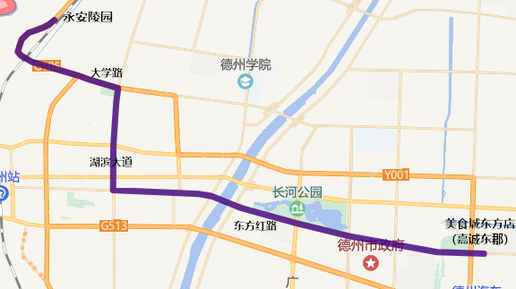途經(jīng)主要站點(diǎn):美食城東方店、董子文化街躍華中學(xué)、山東旭日、高地世紀(jì)城、唐人公館南門、東方家園、德州市第二中學(xué)北門、扒雞美食城西站、市婦女兒童活動(dòng)中心等。