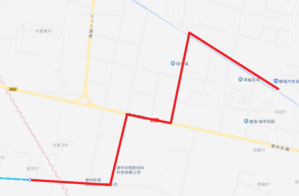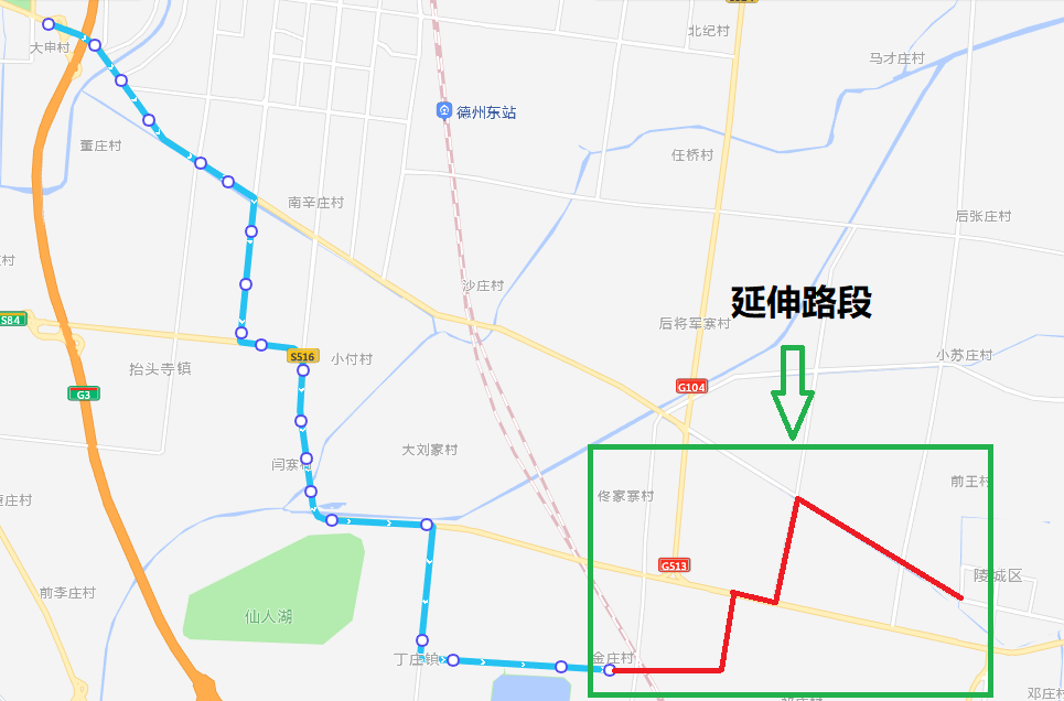 化調(diào)整后線路走向:德百批發(fā)城—東風(fēng)東路—崇德五大道—德州南環(huán)—向陽街—丁莊鎮(zhèn)—后王社區(qū)—丁東路—興國街(鬲津湖城市休閑公園)—陵城南環(huán)—迎賓南大街—陵州路—陵城區(qū)汽車站。站點設(shè)置:德百批發(fā)城、中國太陽谷、減河濕地風(fēng)景區(qū)東風(fēng)路站、億晶能源科技、東風(fēng)東路崇德三大道、東風(fēng)東路崇德四大道、孫莊、雙廟陳、文莊、滿莊、張申、吳寨、閆寨、大薛莊社區(qū)、仙人湖、丁莊向陽街北路口、丁莊鎮(zhèn)中心小學(xué)、丁莊中心站、丁莊、丁莊鎮(zhèn)中心幼兒園、丁東水庫、許橋村、金莊社區(qū)、德州新諾耐火材料有限公司、佳納工業(yè)園、鬲津湖城市休閑公園、鬲津橋、幸福春天、和園小區(qū)、陵城一中、第四實驗小學(xué)、蘆家坊村、幸福東岸、陵城區(qū)汽車站等34處站點。